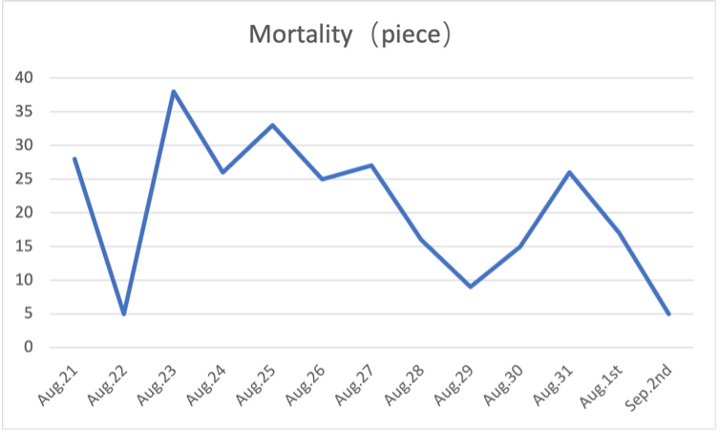 Last August, we conducted an experiment at one farm of a large egg producer to verify the effect of our product, PlusBreathe©.
